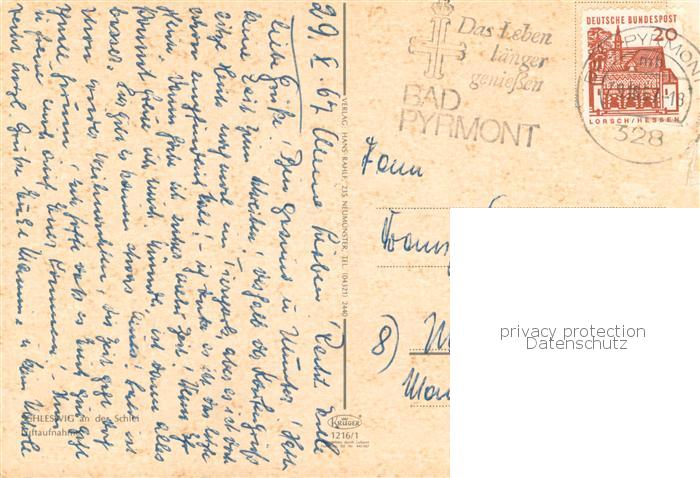 73767171 alte Postkarte Schleswig Schlei Fliegeraufnahme postalisch gelaufen Erhaltung siehe scans [FriedD77] KatCode: 11110001059024
