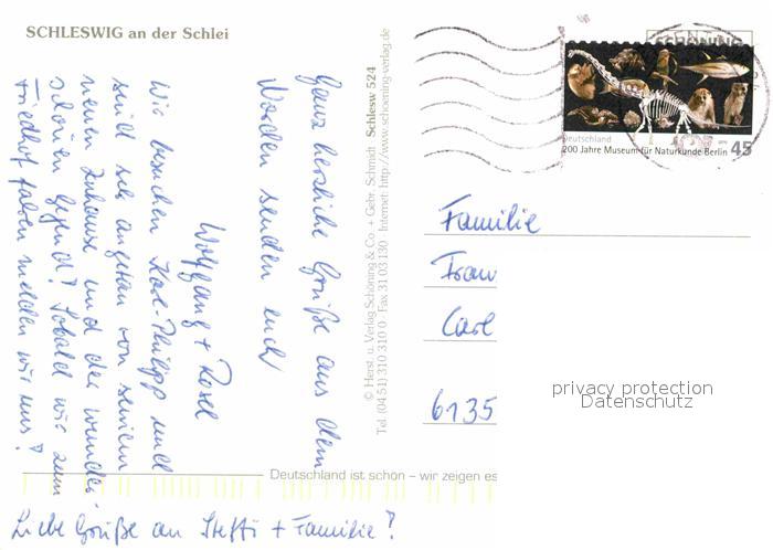 72752372 alte Postkarte Schleswig Schlei Fussgaengerzone Brunnen Kirche Hafen postalisch gelaufen Erhaltung siehe scans [AndreD76] KatCode: 11110001059024