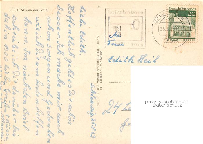 73248296 alte Postkarte Schleswig Schlei Kirche Panorama postalisch gelaufen Erhaltung siehe scans [KathaD81] KatCode: 11110001059024