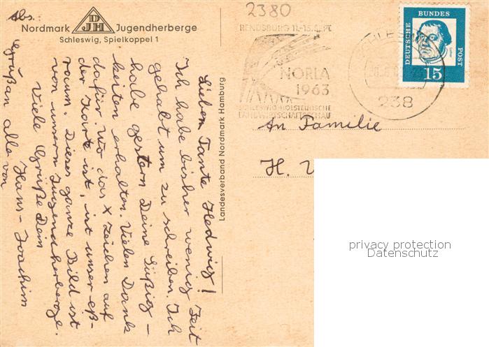 73870811 alte Postkarte Schleswig Schlei Nordmark Jugendherberge Gastraeume postalisch gelaufen Erhaltung siehe scans [WerneD78] KatCode: 11110001059024