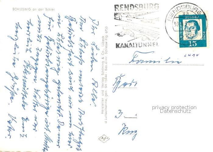 73648091 alte Postkarte Schleswig Schlei Ortsmitte mit Kirche Fliegeraufnahme postalisch gelaufen Erhaltung siehe scans [FriedD77] KatCode: 11110001059024