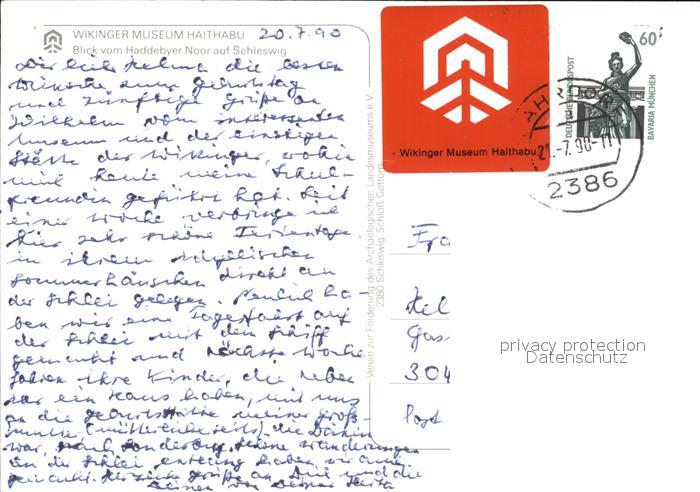 72512780 alte Postkarte Schleswig Schlei Wikinger Museum Haithabu Haddebyer Noor Fliegeraufnahme postalisch gelaufen Erhaltung siehe scans KatCode: 11110001059024