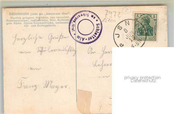 43019885 alte Postkarte Schletteralm Panorama vom Schwarzen Grat Alpen postalisch gelaufen Erhaltung siehe scans [FriedD77] KatCode: 11110008436049