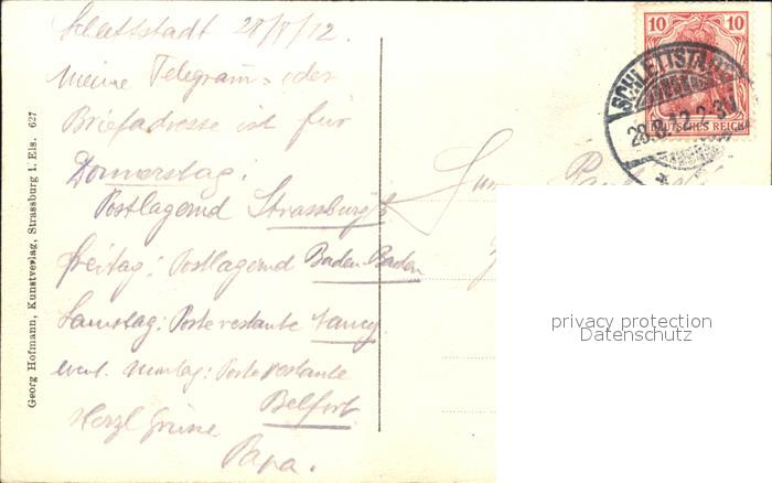 11973248 carte postale Schlettstadt Teilansicht postalisch gelaufen Erhaltung siehe scans KatCode: 11170067567462