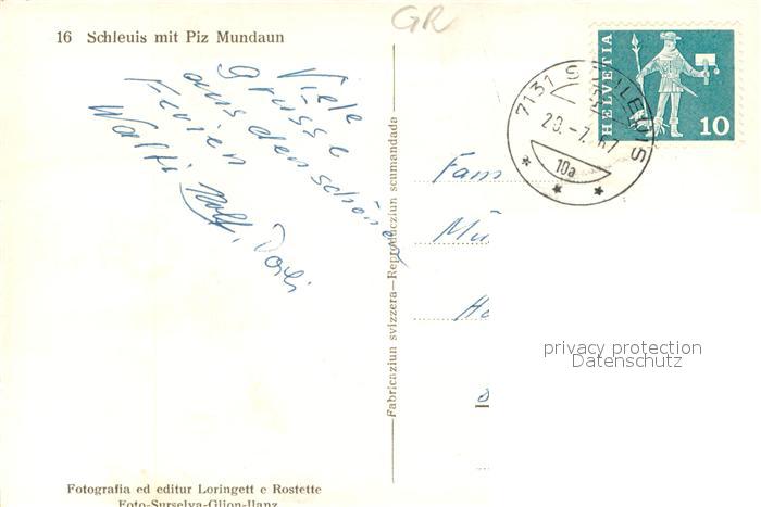 13658573 alte Postkarte Schleuis Schleuin GR mit Piz Mundaun postalisch gelaufen Erhaltung siehe scans [WerneD78] KatCode: 11470100320122