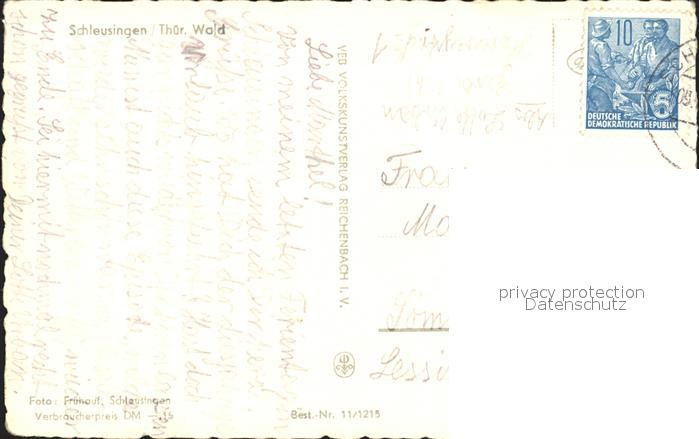 72183990 alte Postkarte Schleusingen postalisch gelaufen Erhaltung siehe scans KatCode: 11110016069043