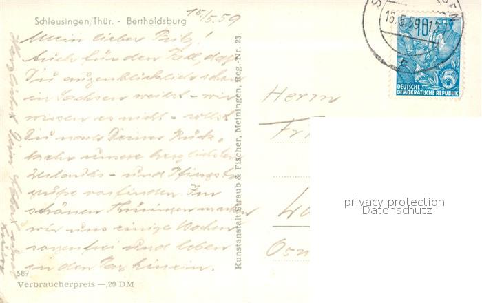 73261611 alte Postkarte Schleusingen Bertholdsburg postalisch gelaufen Erhaltung siehe scans [PaolaD17] KatCode: 11110016069043