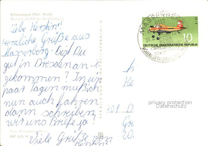 72474133 alte Postkarte Schleusingen Brunnen im Hof der Bertholdsburg postalisch gelaufen Erhaltung siehe scans KatCode: 11110016069043