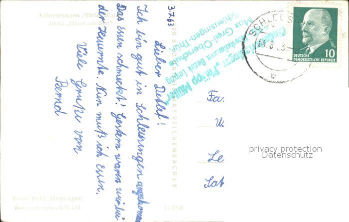 71943200 alte Postkarte Schleusingen HOG Haus am See postalisch gelaufen Erhaltung siehe scans KatCode: 11110016069043