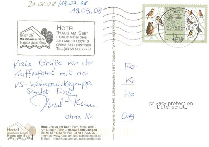73659331 alte Postkarte Schleusingen Hotel Gasthaus Haus am See postalisch gelaufen Erhaltung siehe scans [LiesaD40] KatCode: 11110016069043