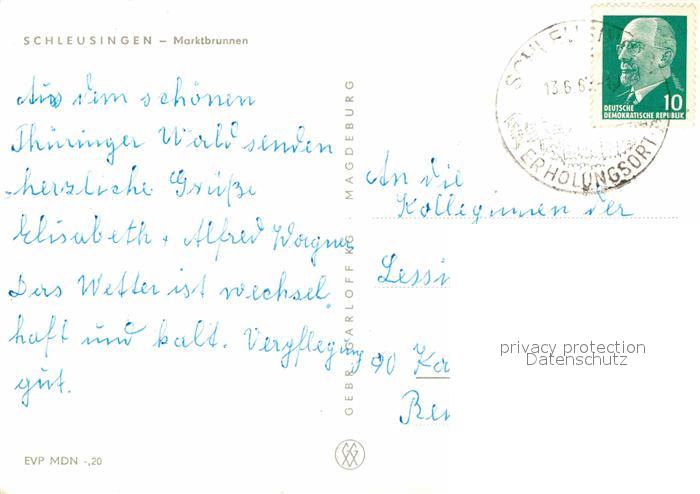 72704890 alte Postkarte Schleusingen Marktbrunnen postalisch gelaufen Erhaltung siehe scans [AndreD76] KatCode: 11110016069043