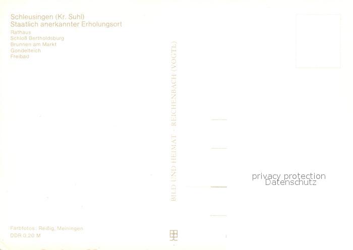 73061773 Schleusingen Rathaus Schloss Bertholdsburg Brunnen Markt Gondelteich Freibad postalisch nicht gelaufen Erhaltung siehe scans [FriedD77] KatCode: 11110016069043