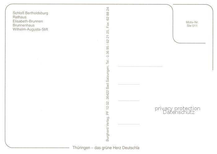 73230111 Schleusingen Schloss-Bertholdsburg Rathaus Elisabeth-Brunnen Brunnenhaus Wilhelm-Augusta-Stift postalisch nicht gelaufen Erhaltung siehe scans [LiesaD40] KatCode: 11110016069043