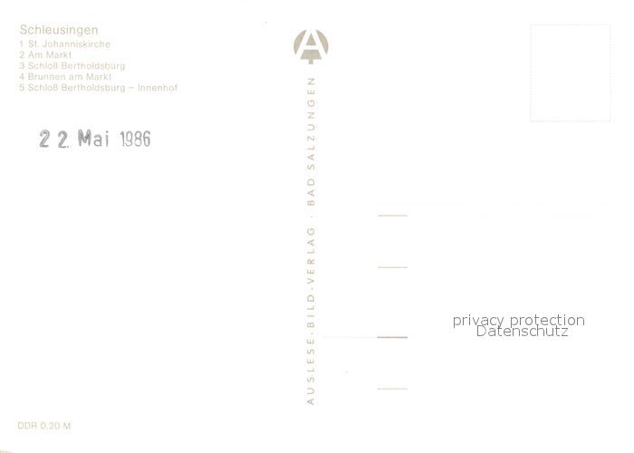 72972777 Schleusingen St Johanniskirche Markt Schloss Bertholdsburg Brunnen postalisch nicht gelaufen Erhaltung siehe scans [FriedD77] KatCode: 11110016069043