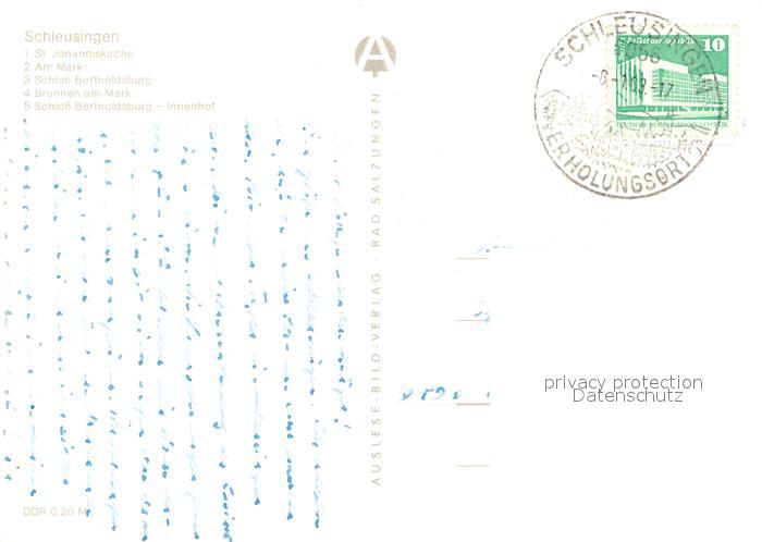 73052486 alte Postkarte Schleusingen St. Johanniskirche Markt Schloss Bertholdsburg postalisch gelaufen Erhaltung siehe scans [NatalD47] KatCode: 11110016069043