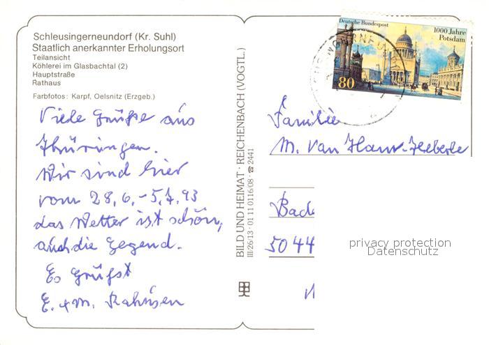 73313759 alte Postkarte Schleusingerneundorf Koehlerei Hauptstrasse Rathaus postalisch gelaufen Erhaltung siehe scans [LiesaD40] KatCode: 11110016069059