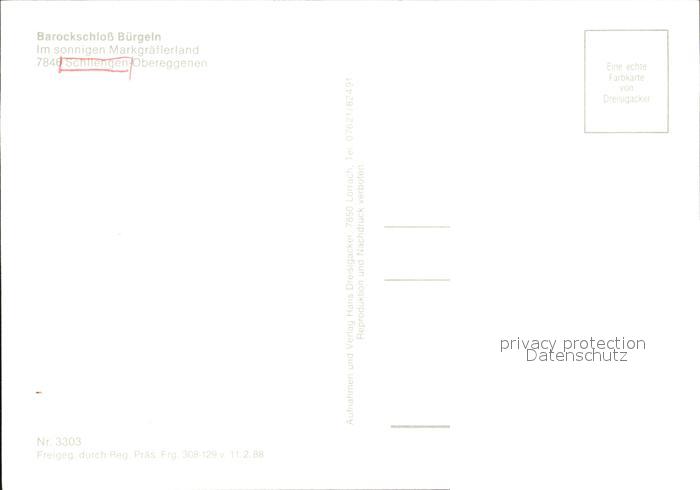 72531596 Schliengen Barockschloss Buergeln Fliegeraufnahme postalisch nicht gelaufen Erhaltung siehe scans [WerneD78 kt116box] KatCode: 11110008336078