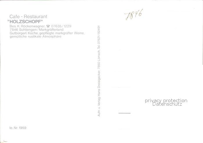 71832694 Schliengen Cafe-Restaurant Holzschopf postalisch nicht gelaufen Erhaltung siehe scans KatCode: 11110008336078