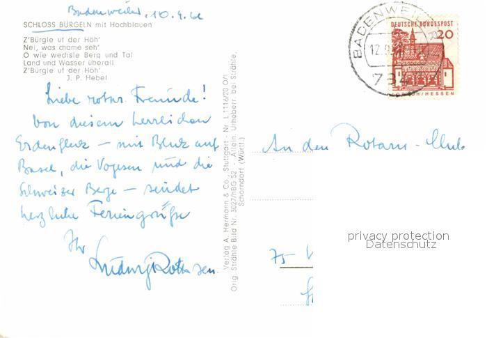 72797204 alte Postkarte Schliengen Fliegeraufnahme Schloss Buergeln postalisch gelaufen Erhaltung siehe scans [AndreD76] KatCode: 11110008336078