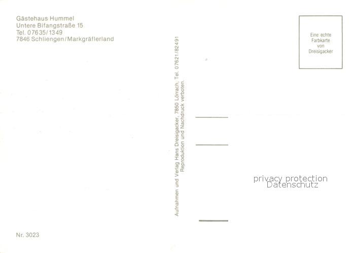 73641978 Schliengen Gaestehaus Hummel Gastraeume Garten postalisch nicht gelaufen Erhaltung siehe scans [WerneD78] KatCode: 11110008336078