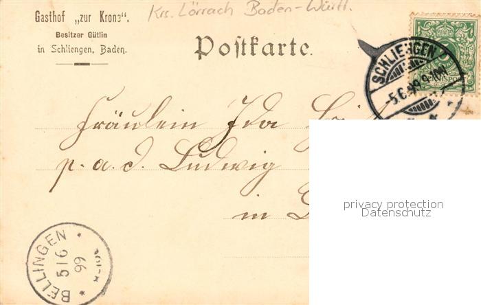 33278000 alte Postkarte Schliengen Gasthof Krone Apotheke Tracht postalisch gelaufen Erhaltung siehe scans [NatalD47] KatCode: 11110008336078
