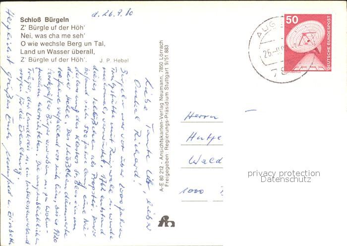 72411676 alte Postkarte Schliengen Schloss Buergeln Fliegeraufnahme postalisch gelaufen Erhaltung siehe scans KatCode: 11110008336078