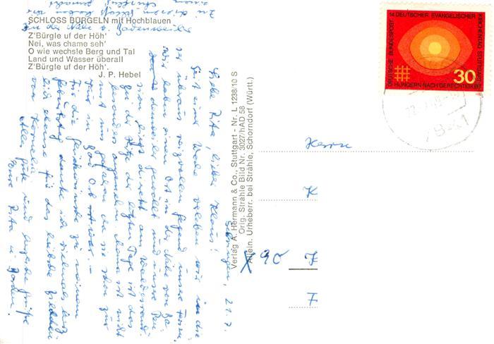 73945886 alte Postkarte Schliengen Schloss Buergeln mit Hochblauen Schwarzwald postalisch gelaufen Fliegeraufnahme Erhaltung siehe scans [FriedD77] KatCode: 11110008336078
