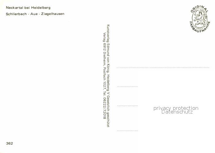 72889100 Schlierbach Heidelberg Aue Ziegelhausen Neckartal postalisch nicht gelaufen Erhaltung siehe scans [LiesaD40] KatCode: 11110008221000