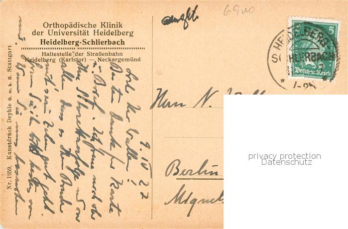 73803536 Schlierbach Heidelberg Orthopaedische Klinik der Uni Heidelberg postalisch nicht gelaufen Erhaltung siehe scans [FriedD77] KatCode: 11110008221000
