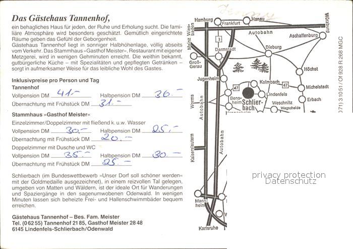 72527323 Schlierbach Lindenfels Odenwald Gaestehaus Tannenhof postalisch nicht gelaufen Werbekarte (keine Postkarte) Erhaltung siehe scans KatCode: 11110006431015