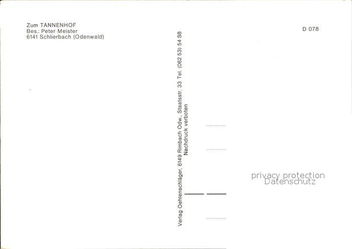 72478127 Schlierbach Lindenfels Odenwald Tannenhof Restaurant postalisch nicht gelaufen Erhaltung siehe scans KatCode: 11110006431015