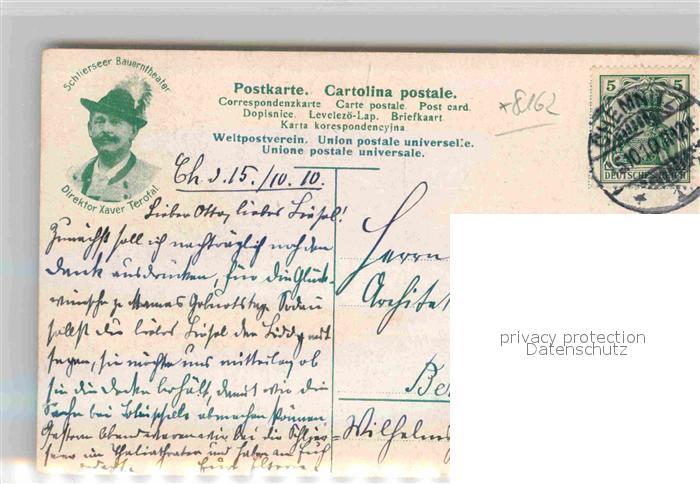 42649911 alte Postkarte Schliersee Bauerntheater Direktor Xaver Terofal postalisch gelaufen Erhaltung siehe scans [KathaD79] KatCode: 11110009182131
