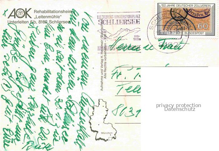 Schliersee Bayern Panorama Rehabilitatiosheim Leitenmuehle Teilansichten postalisch gelaufen Erhaltung siehe scans [WerneD78] alte Postkarte Wern Katcode 11110009182131