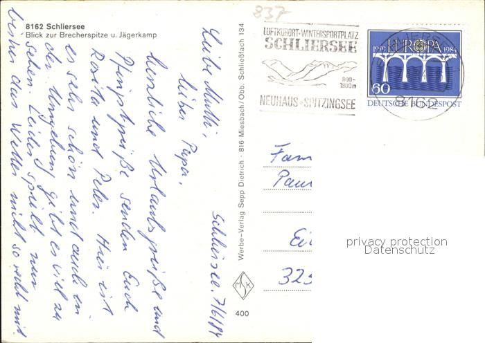 72603584 alte Postkarte Schliersee Blick zur Brecherspitze und Jaegerkamp Mangfallgebirge postalisch gelaufen Erhaltung siehe scans [FriedD77] KatCode: 11110009182131