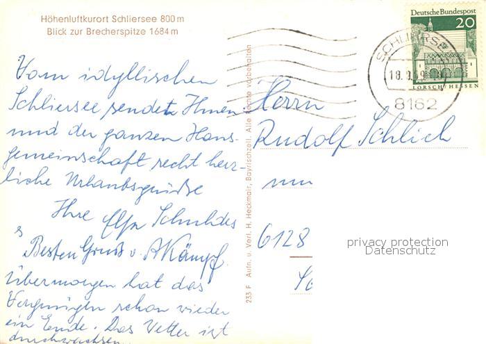72999703 alte Postkarte Schliersee Blick zur Brecherspitze postalisch gelaufen Erhaltung siehe scans [AndreD76] KatCode: 11110009182131