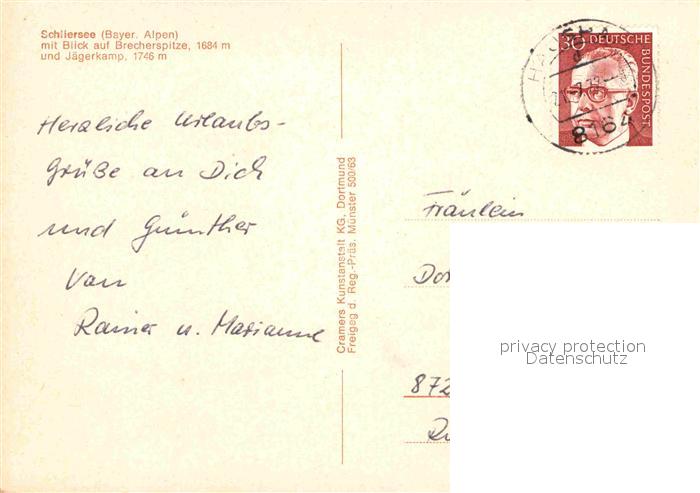 72847060 alte Postkarte Schliersee Brecherspitze Jaegerkamp postalisch gelaufen Erhaltung siehe scans [NatalD47] KatCode: 11110009182131