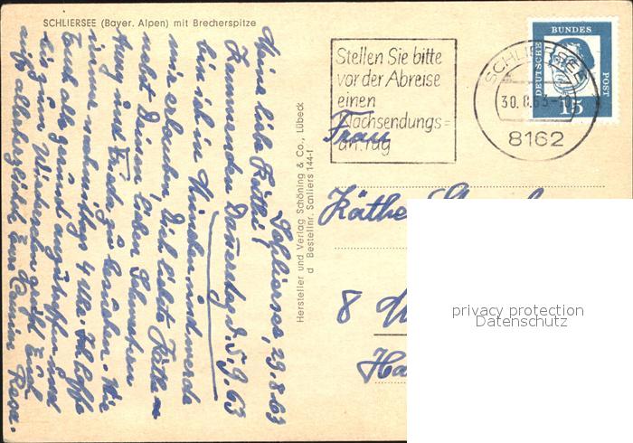 72574133 alte Postkarte Schliersee Brecherspitze postalisch gelaufen Erhaltung siehe scans [KathaD79] KatCode: 11110009182131