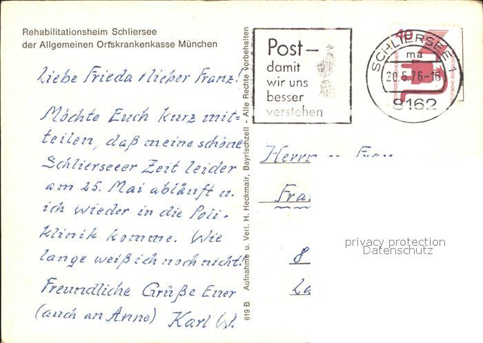 72598680 alte Postkarte Schliersee Fliegeraufnahme Rehabilitationsheim postalisch gelaufen Erhaltung siehe scans [LiesaD40] KatCode: 11110009182131
