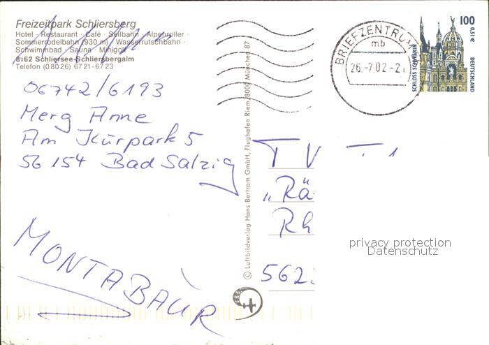 71987928 alte Postkarte Schliersee Freizeitpark Schliersberg postalisch gelaufen Erhaltung siehe scans KatCode: 11110009182131