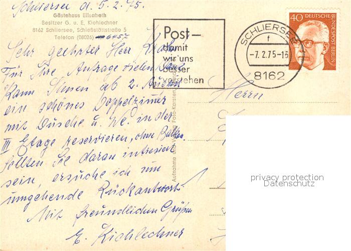 73542314 alte Postkarte Schliersee Gaestehaus Elisabeth postalisch gelaufen Erhaltung siehe scans [KathaD81] KatCode: 11110009182131