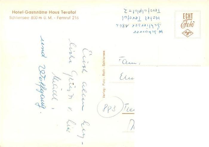 73900368 Schliersee Hotel Gaststaette Haus Terofal postalisch nicht gelaufen Erhaltung siehe scans [FriedD77] KatCode: 11110009182131