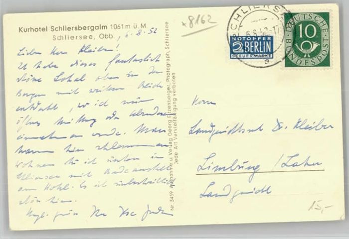 40209358 Schliersee Hotel Schliersbergalm x 1952 KatCode 11110009182131