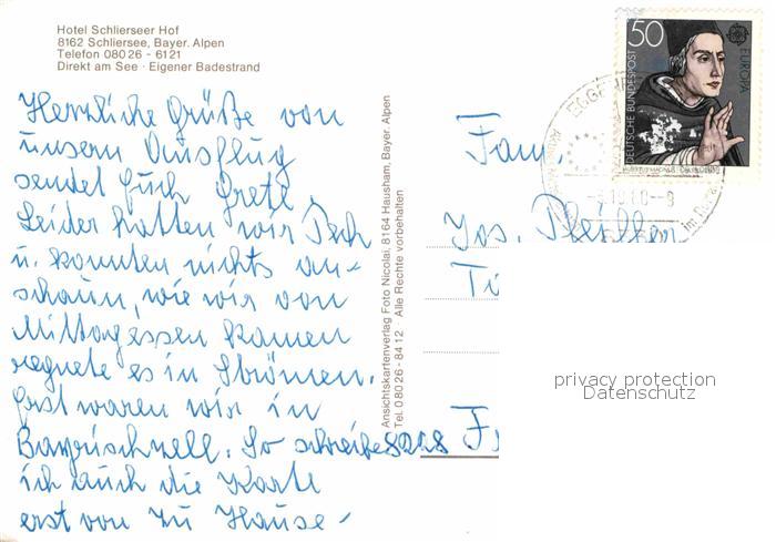 72930554 alte Postkarte Schliersee Hotel Schlierseer Hof Landschaftspanorama Alpen postalisch gelaufen Erhaltung siehe scans [FriedD77] KatCode: 11110009182131