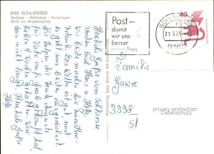 72283562 alte Postkarte Schliersee Kurhaus Hallenbad Kuranlagen Brecherspitze Mangfallgebirge postalisch gelaufen Erhaltung siehe scans KatCode: 11110009182131