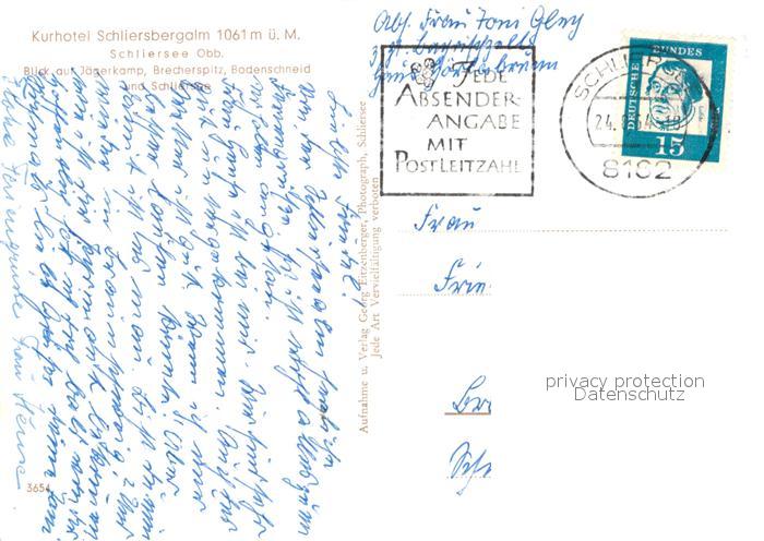 73100680 alte Postkarte Schliersee Kurhotel Schliersbergalm postalisch gelaufen Erhaltung siehe scans [KathaD81] KatCode: 11110009182131