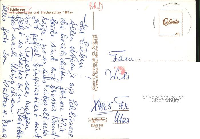 72533584 alte Postkarte Schliersee mit Jaegerkamp und Brecherspitze postalisch gelaufen Erhaltung siehe scans [WerneD78 kt116box] KatCode: 11110009182131