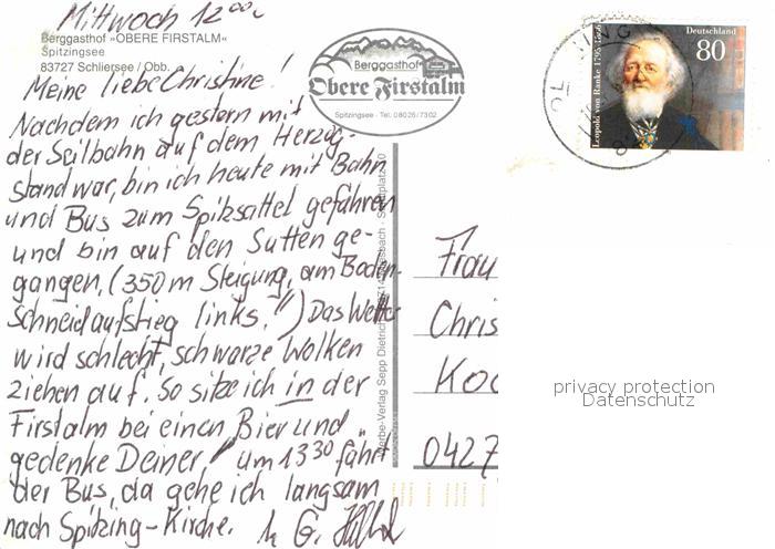 72725810 alte Postkarte Schliersee Obere Firstalm Spitzingsee Panorama postalisch gelaufen Erhaltung siehe scans [WerneD78] KatCode: 11110009182131