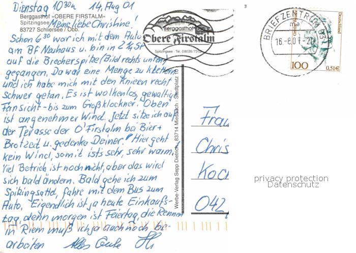 72725821 alte Postkarte Schliersee Obere Firstalm Spitzingsee Terrasse Panorama postalisch gelaufen Erhaltung siehe scans [WerneD78] KatCode: 11110009182131