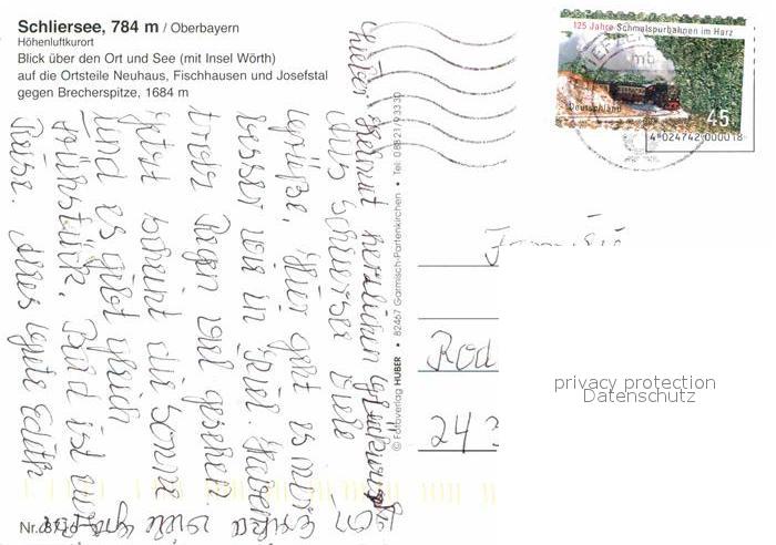 72663655 alte Postkarte Schliersee Panorama Blick zur Insel Woerth gegen Brecherspitze Mangfallgebirge postalisch gelaufen Erhaltung siehe scans [FriedD77] KatCode: 11110009182131