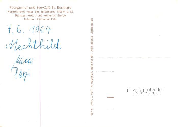 73041680 Schliersee Postgasthof See Cafe St Bernhard Haus am Spitzingsee postalisch nicht gelaufen Erhaltung siehe scans [WerneD78] KatCode: 11110009182131